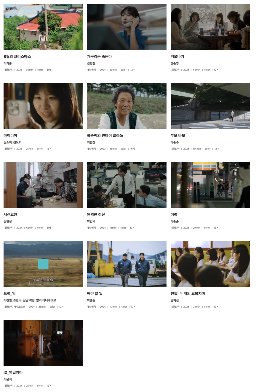 지난 1년간 한국독립영화의 성취와 경향을 조명한다. 올해는 계절의 시간과 기억을 담아낸 영화들이 주를 이루는 특징이 있는데, 한 계절이 지나고 남긴 깊은 여운을 전달하거나 다가올 계절에 대한 기대와 간절함을 표현한다.